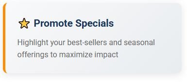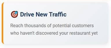 Front-Page Visibility – Every restaurant gets prime placement — no hidden pages